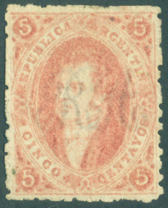 5c. RED ROSE, BERNARDINO RIVADAVIA (1864).