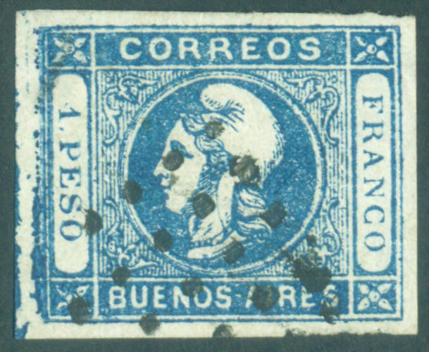 CLEAR PRINTING, FOUR COMPLETE MARGINS. WITH DOUBLE PARTIAL PRINTING.