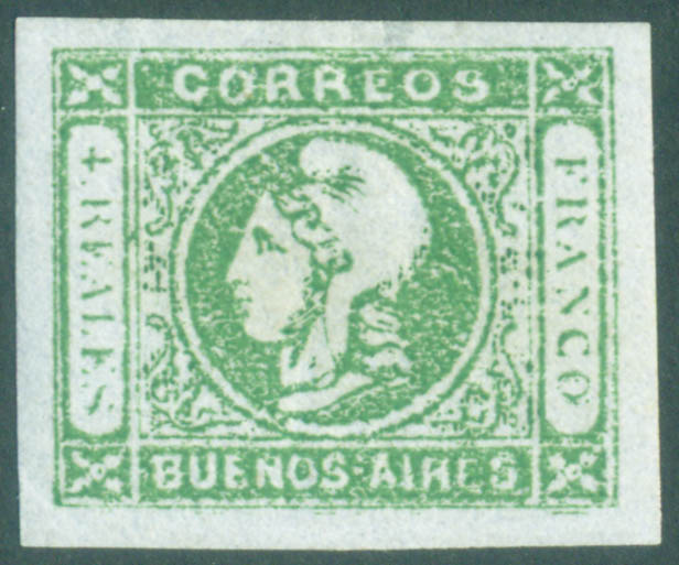 FOUR COMPLETE MARGINS, OILY PRINTING. WITH SLIGHTLY SLIMMING ON SUPERIOR SHEET BORDER.