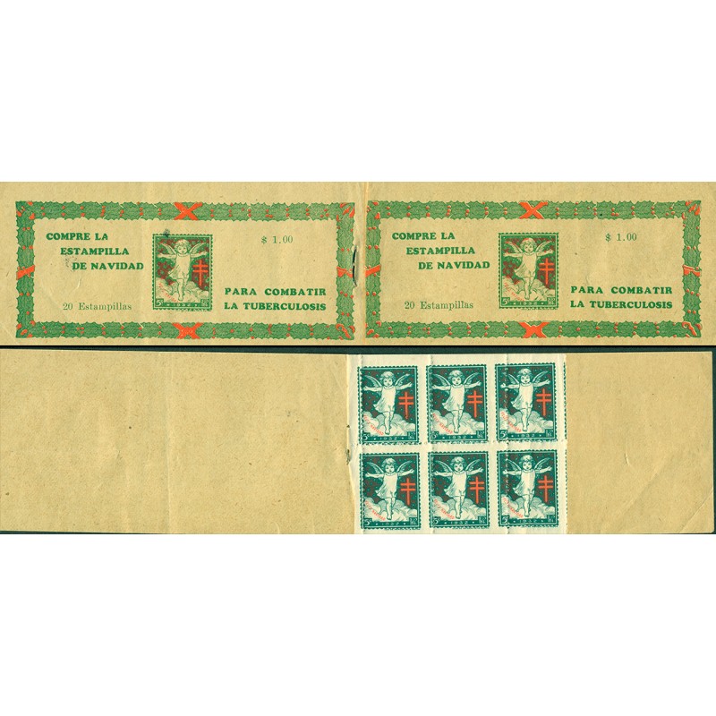 5c. CHRISTMAS 1932, PRINTED BY “CASA DE LA MONEDA” IN CARNET OF 20 STAMPS. PRESENTS TWO LITTLE SHEET WITH 6 STAMPS EITHER ONE. THE FIRST WITH PERFORATIONS MOVED.