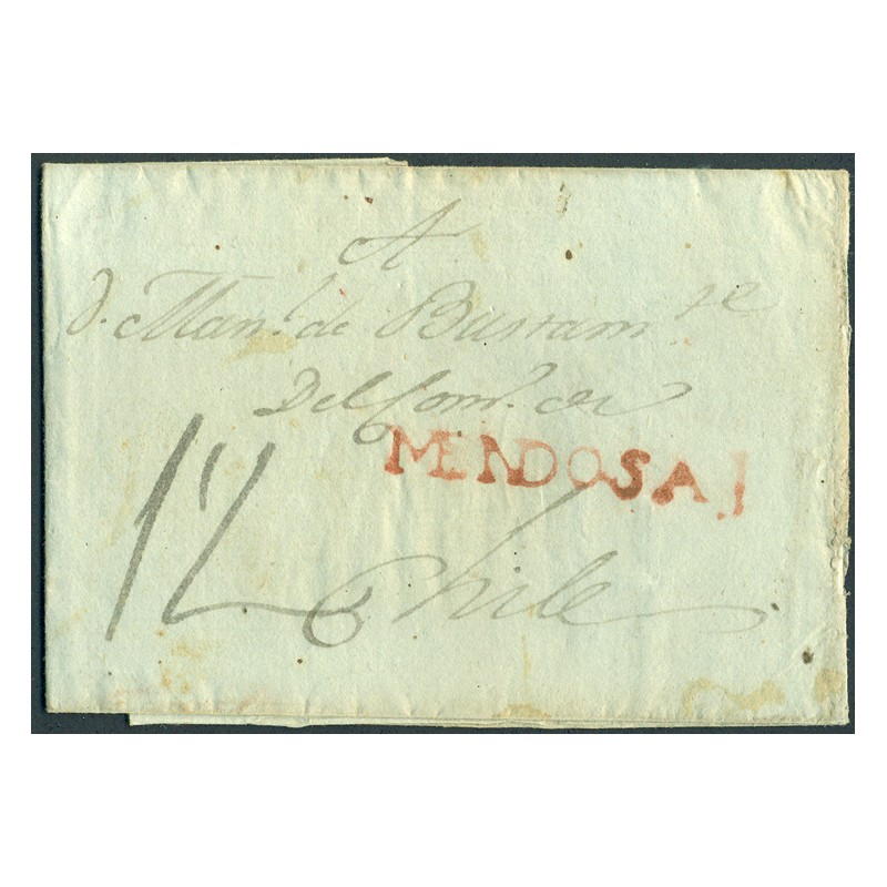 COMPLET COVER CIRCULATED FROM MENDOZA WITH MARK V.K. Nº 1 “MENDOSA” IN COLOUR RED ROSE, TO CHILE WITH RATE 12 IMPOSED BY HAND