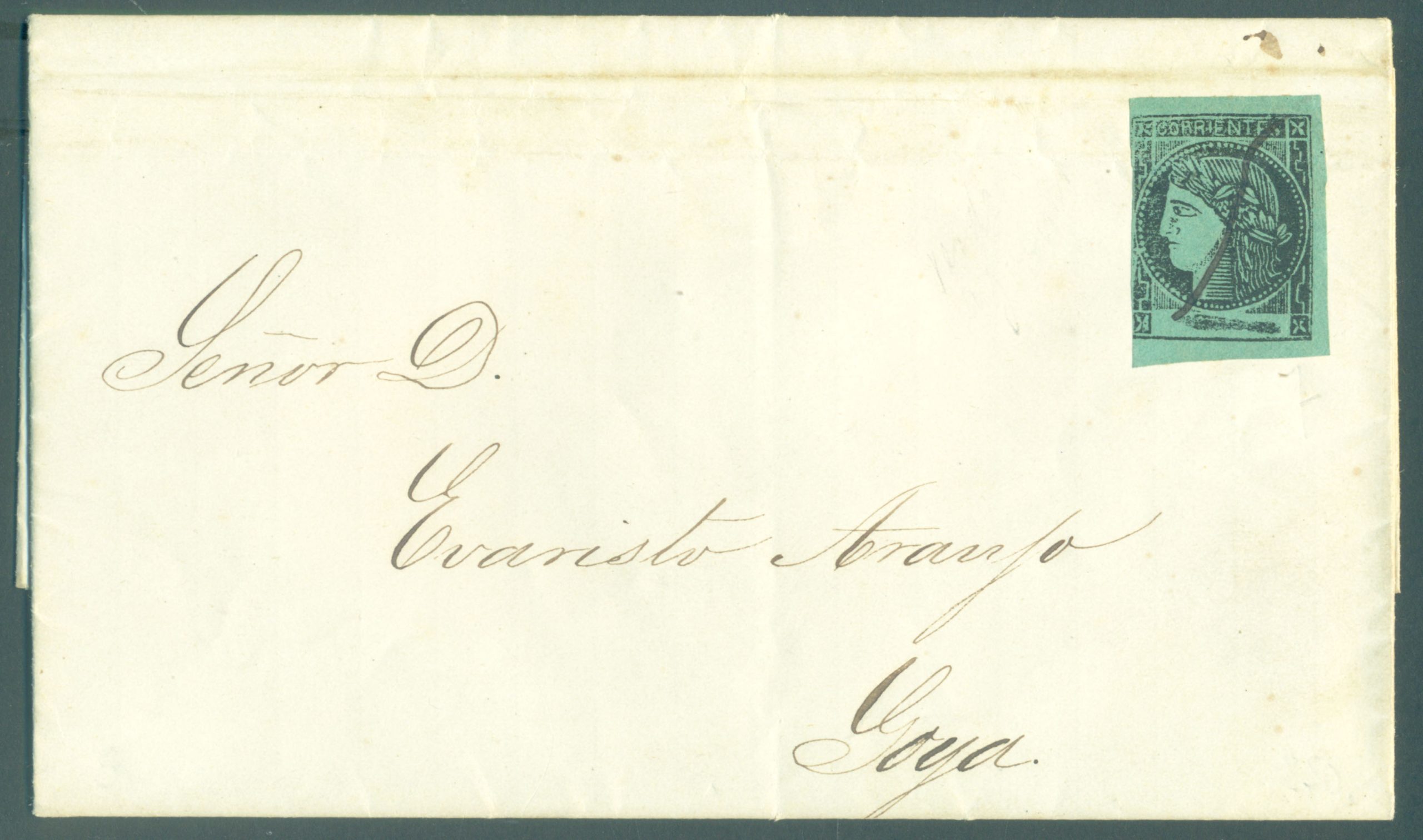 CORR 5 – COMPLETE COVER CIRCULATED FROM MERCEDES TO GOYA. OBLITERATED BY PEN