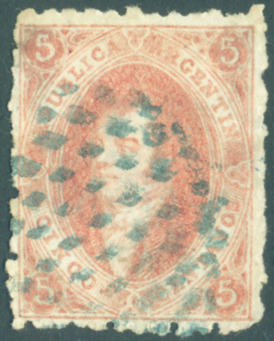 5c. ROJO LADRILLO, BERNARDINO RIVADAVIA (1864).