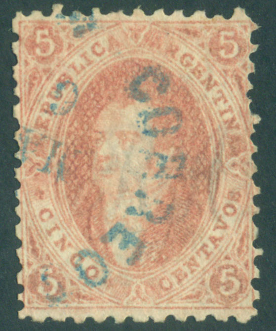 5c. ROJO ROSA, BERNARDINO RIVADAVIA (1864).