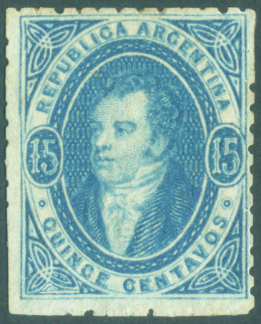 15c. BLUE, B.RIVADAVIA (04/1864 – 06/1866).