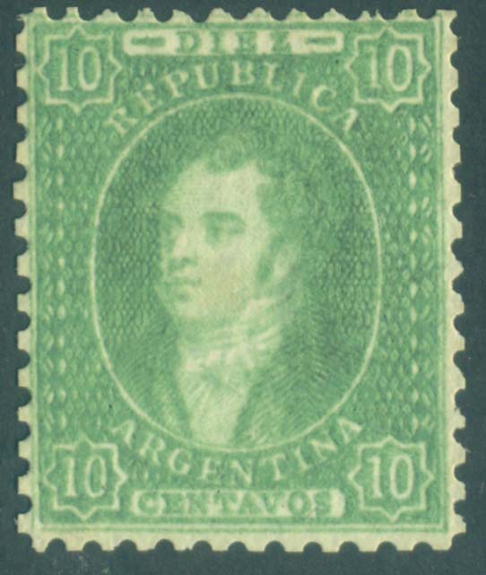 10c. YELLOWISH GREEN, HALF-CLEAR PRINTING ON MEDIUM PAPER.