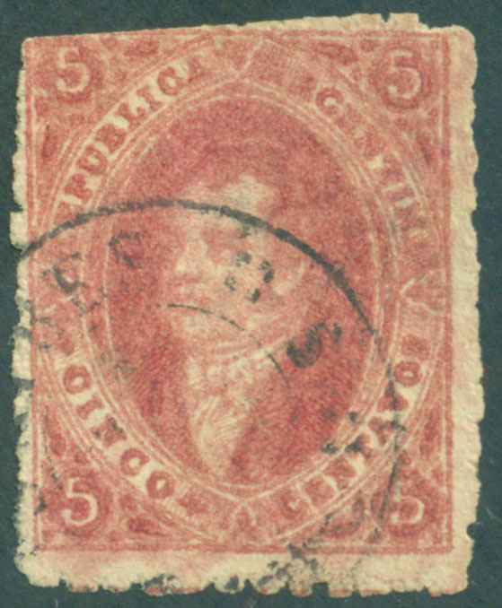5c. DARK ROSE, BERNARDINO RIVADAVIA (10/28/1865).