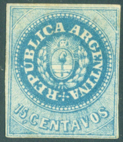 15c. BLUE, LITTLE SHIELD WITH ACCENT ON “Ú” (01/11/1862).