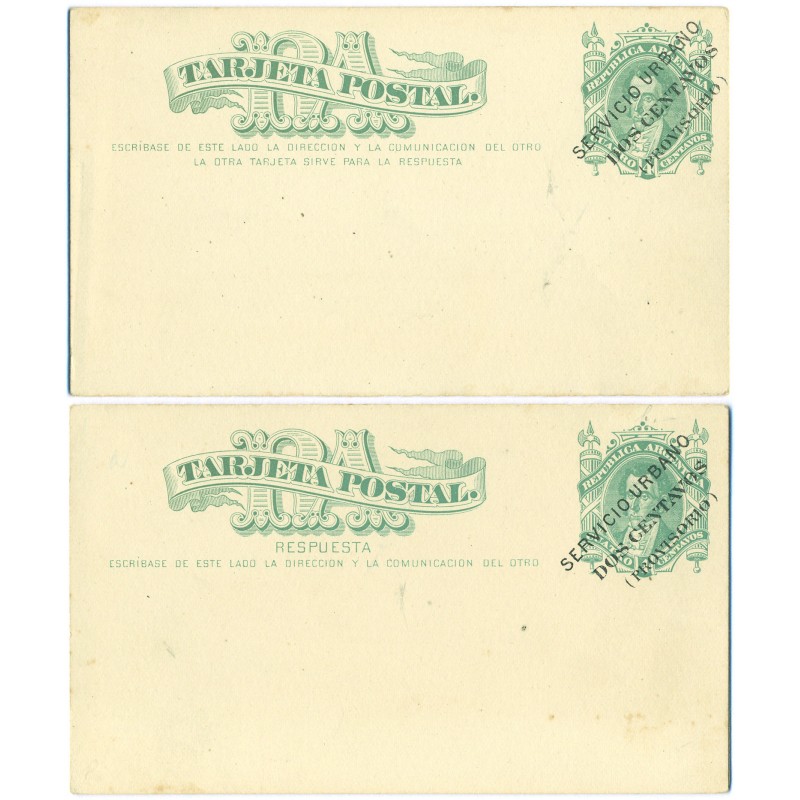 2c.+2c. SOBRE 4c. + 4c. VERDE. TARJETA NRO.2 S/CARGADA EN NEGRO. TARJETA DOBLE C/RESPUESTA PAGA, NUEVA.