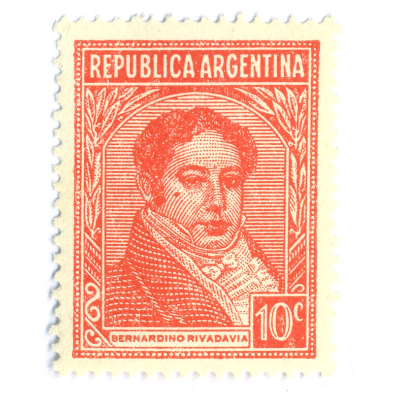 10c. B.RIVADAVIA, ROJO. TIPO I,*. VARIEDAD: LUNAR EN LA MEJILLA IZQUIERDA.